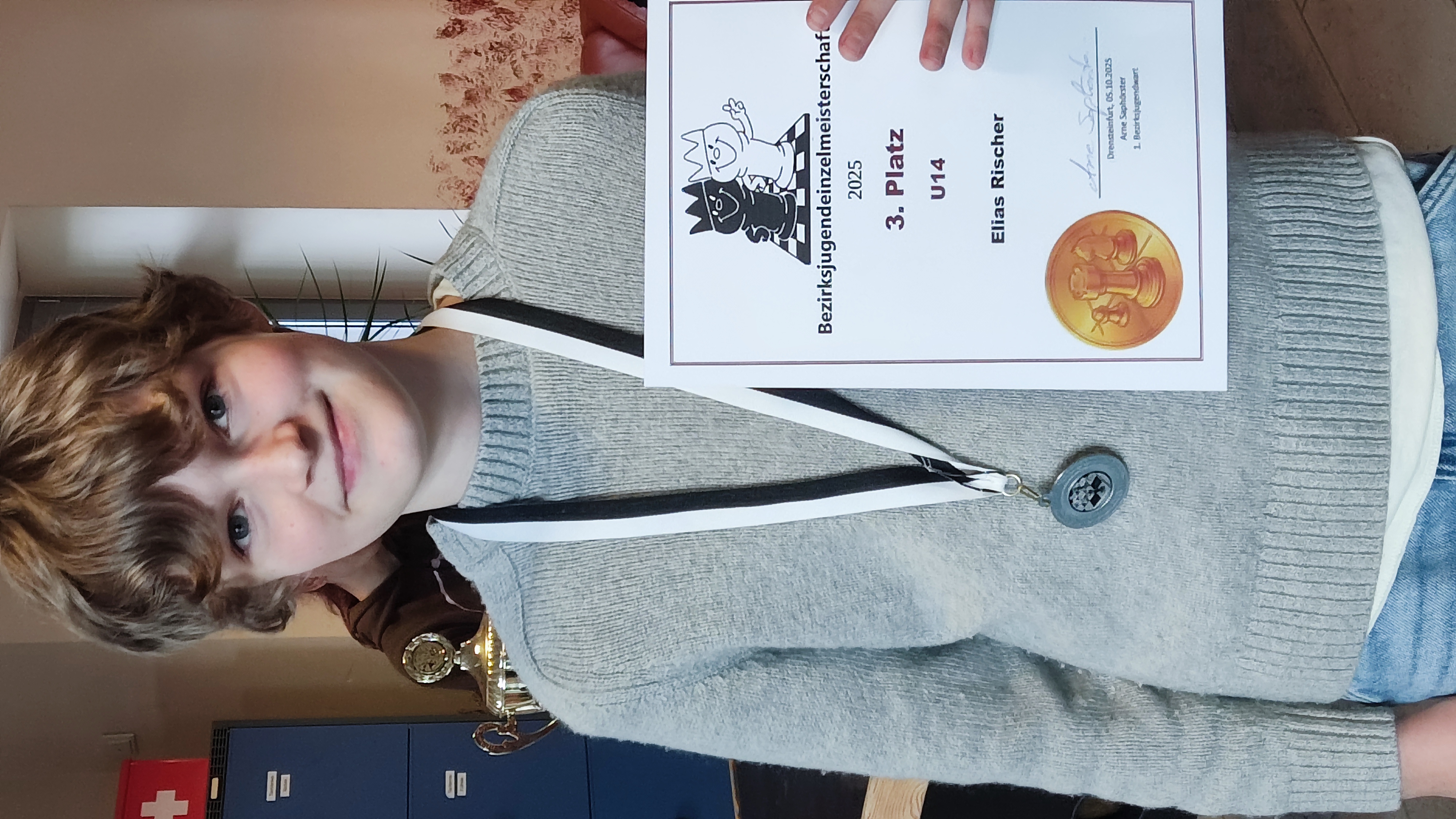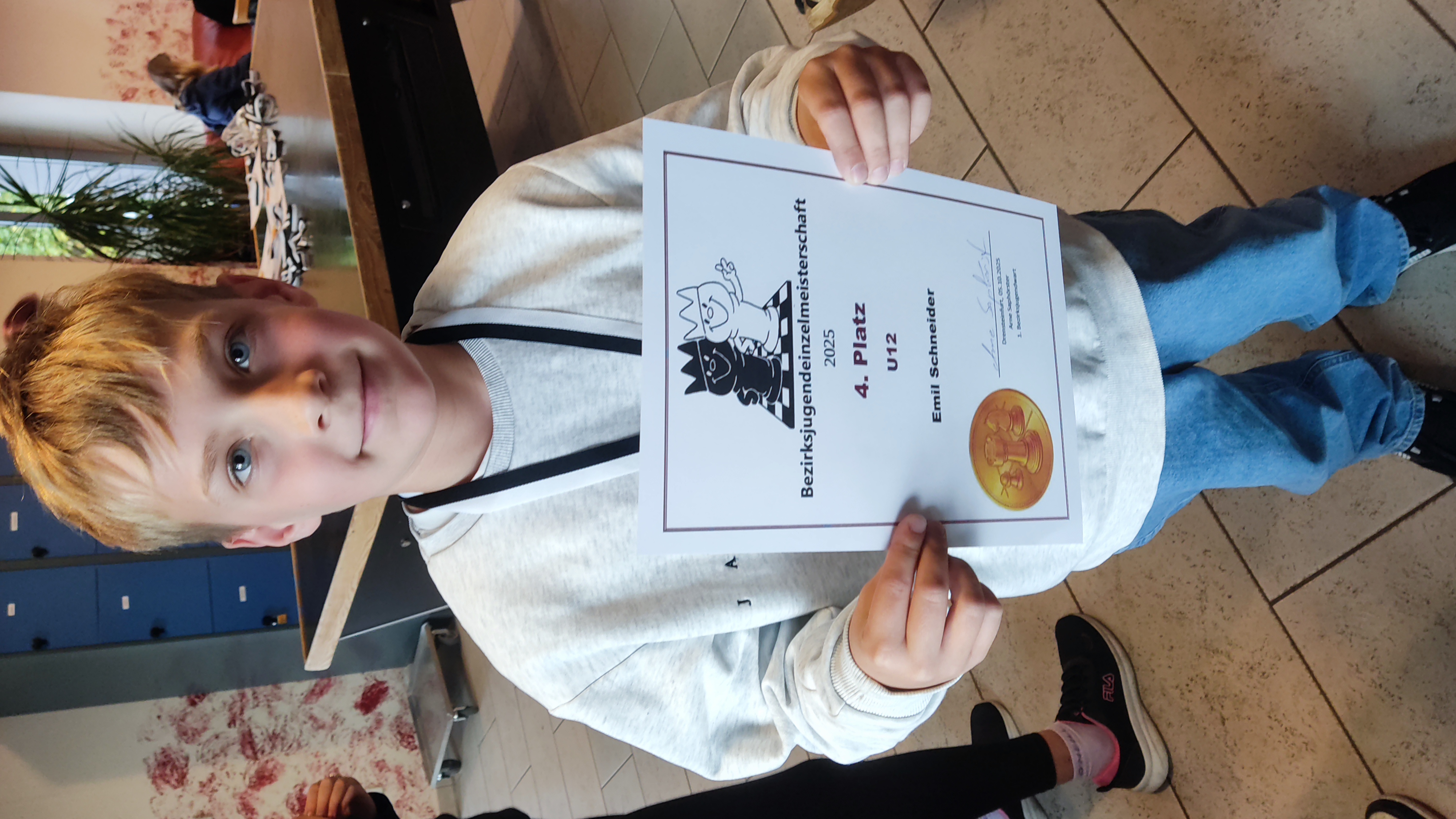 Ein echtes Ausrufezeichen setzte Patrick Drees in der U16: Mit mehreren Siegen, nur einer Niederlage und einem Remis holte er sich souverän den 1. Platz und damit den Titel des Bezirksmeisters.